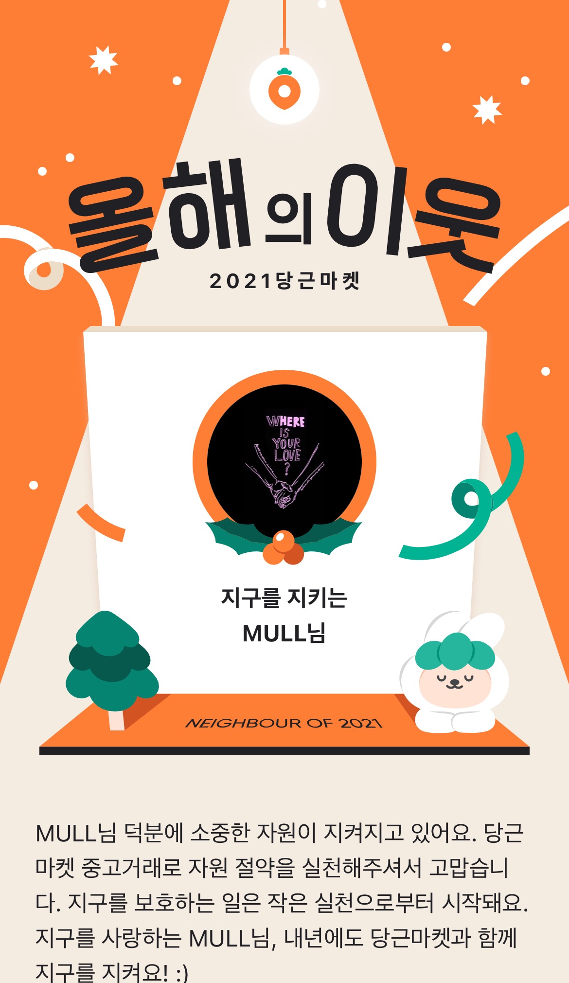 당근에 알림이 왔길래 물건 팔리는 소린가~ 싶어 확인해 보니 올해의 이웃에 선정되었다고 나온다.