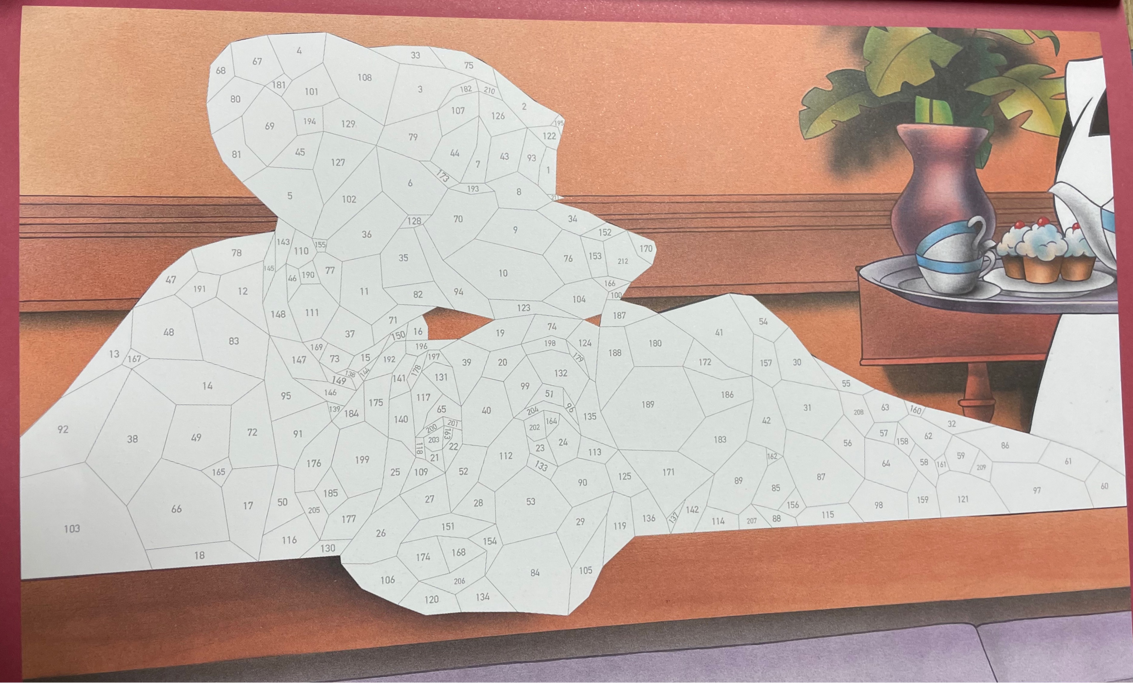 조각조각 나눠진 그림에 번호를 써놓고 거기에 맞는 스티커를 붙여주면된다.