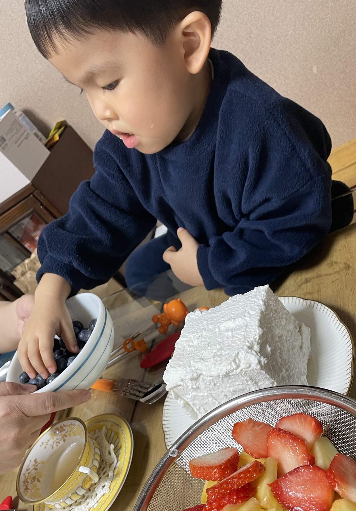 남편이 생크림 만들고, 내가 과일을 준비하고